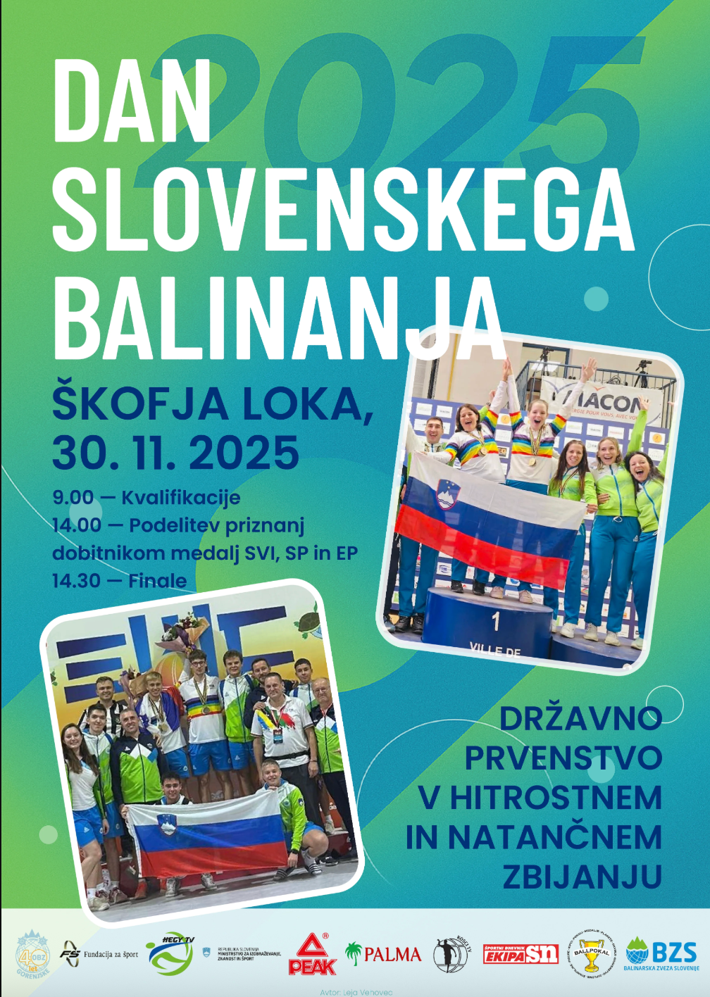 V nedeljo je v Balinarski dvorani Trata v Škofji Loki v organizaciji Območne balinarske zveze Gorenjska potekal tradicionalni Dan slovenskega balinanja, na katerem so potekala državna prvenstva v kar osmih kategorijah članic, članov, mladink, mladincev in U-14. Eneja Ozbič Primc (Skala Sežana) je osvojila naslove v hitrostnem zbijanju v kategoriji članic in mladink ter naslov v natančnem zbijanju pri članic, Jaka Štremfel (QAP Postojna) je novi državni prvak v hitrostnem zbijanju pri članih, Gregor Korošec (QAP Postojna) v natančnem zbijanju pri članih, Simon Možina (Antena Portorož) v natančnem zbijanju raffa, Urban Hiti v hitrostnem zbijanju v mladinski kategoriji, Jasmin Švara (Hrast) pa v hitrostnem zbijanju v kategoriji U-14. Balinarska zveza Slovenije je v pestrem celodnevnem programu obeležila obletnico smrti pokojnega nekdanjega predsednika BZS Jožeta Rebca ter tradicionalno nagradila dobitnice in dobitnike medalj na evropskih in svetovnih prvenstvih ter svetovnih igrah in člane strokovnega štaba v letu 2025. Posnetek dogajanja iz Škofje Loke si lahko ogledate preko Facebook in spletne strani ter Youtube kanala Balinarske zveze Slovenije ter Youtube kanalov Kosci TV in Hegy TV.