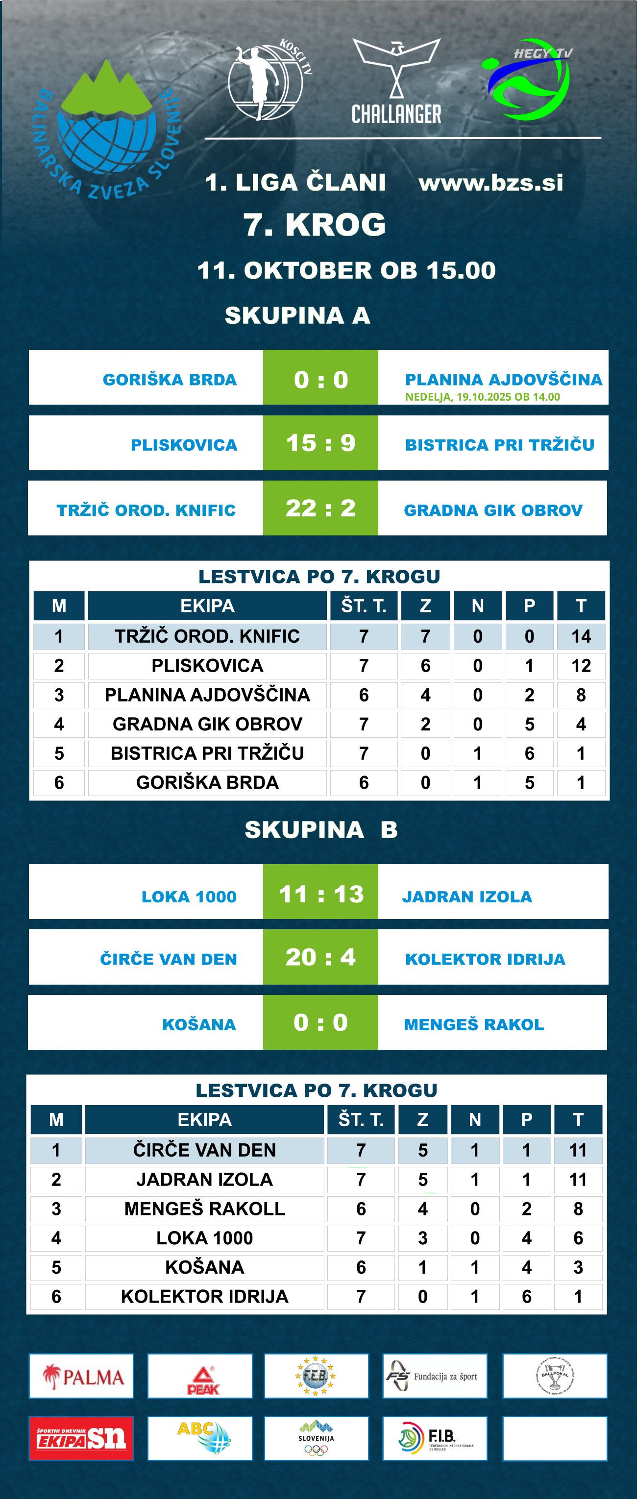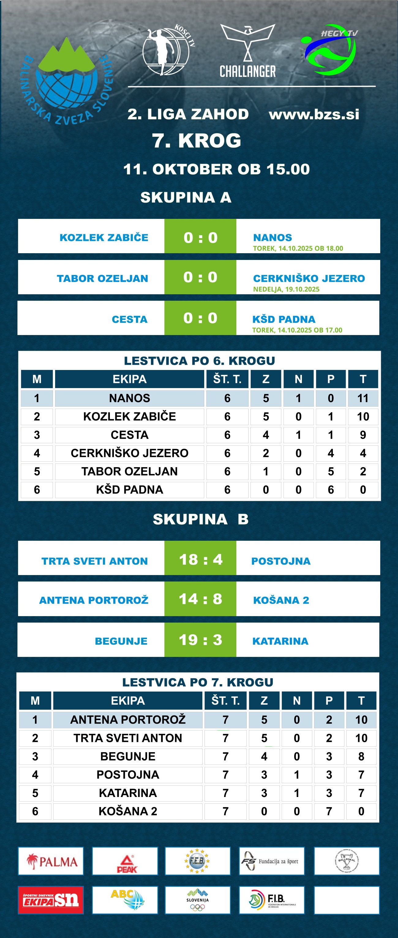 V balinarski Super ligi je v četrtkovem vnaprej odigranem dvoboju 7. kroga Marjetica Koper morala na domačem igrišču priznati premoč QAP Postojni s 4:22, v soboto pa bodo odigrane vse štiri tekme 6. kroga, v katerih so slavili Trata, Termoplasti Plama Ilirska Bistrica, Zabiče Kozlek in Skala. Razpored tekem in rezultate lahko najdete na spletni strani BZS pod zavihkom Tekmovanja/Državne lige 2025/26 in preko aplikacije Challanger ter teletekstu RTV Slovenija, obračun iz Sežane pa si lahko v posnetku ogledate preko Youtube kanala Kosci TV in spletne strani BZS.