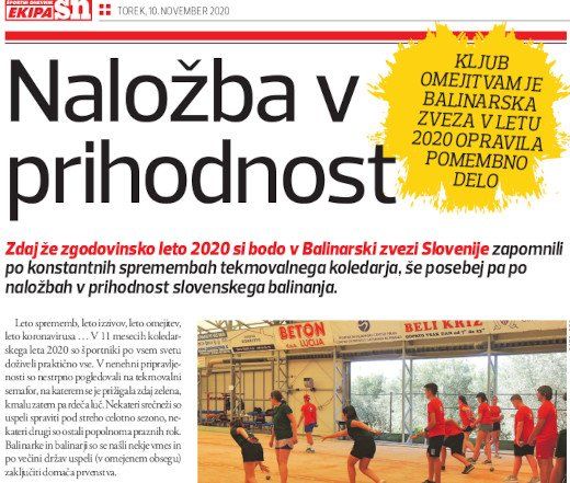 Zdaj že zgodovinsko leto 2020 so bodo v Balinarski zvezi Slovenije zapomnili po konstantnih spremembah tekmovalnega koledarja, še posebej pa po naložbah v prihodnost slovenskega balinanja.