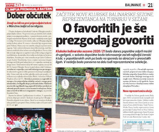 Klubsko balinarsko sezono 2020/21 bodo danes popoldne odprli moški drugoligaši, v soboto dopoldne bodo tekmovanje začeli najboljši ženski klubi, v popoldanskih urah pa bodo na sporedu še obračuni v preostalih ligah. V nedeljo bodo ponovno na delu tudi reprezentančne selekcije.