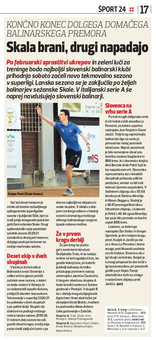V zadnjem krogu rednega dela Super lige je padla odločitev o parih polfinala, ki se bo na dve dobljeni tekmi pričelo 14. marca, ter obstanku v elitni moški balinarski druščini, v katerem so krajšo potegnili Velenjčani. Razpored tekem in rezultate lahko najdete na spletni strani BZS pod zavihkom Tekmovanja/Državne lige 2025/26 in preko aplikacije Challanger ter teletekstu RTV Slovenija.