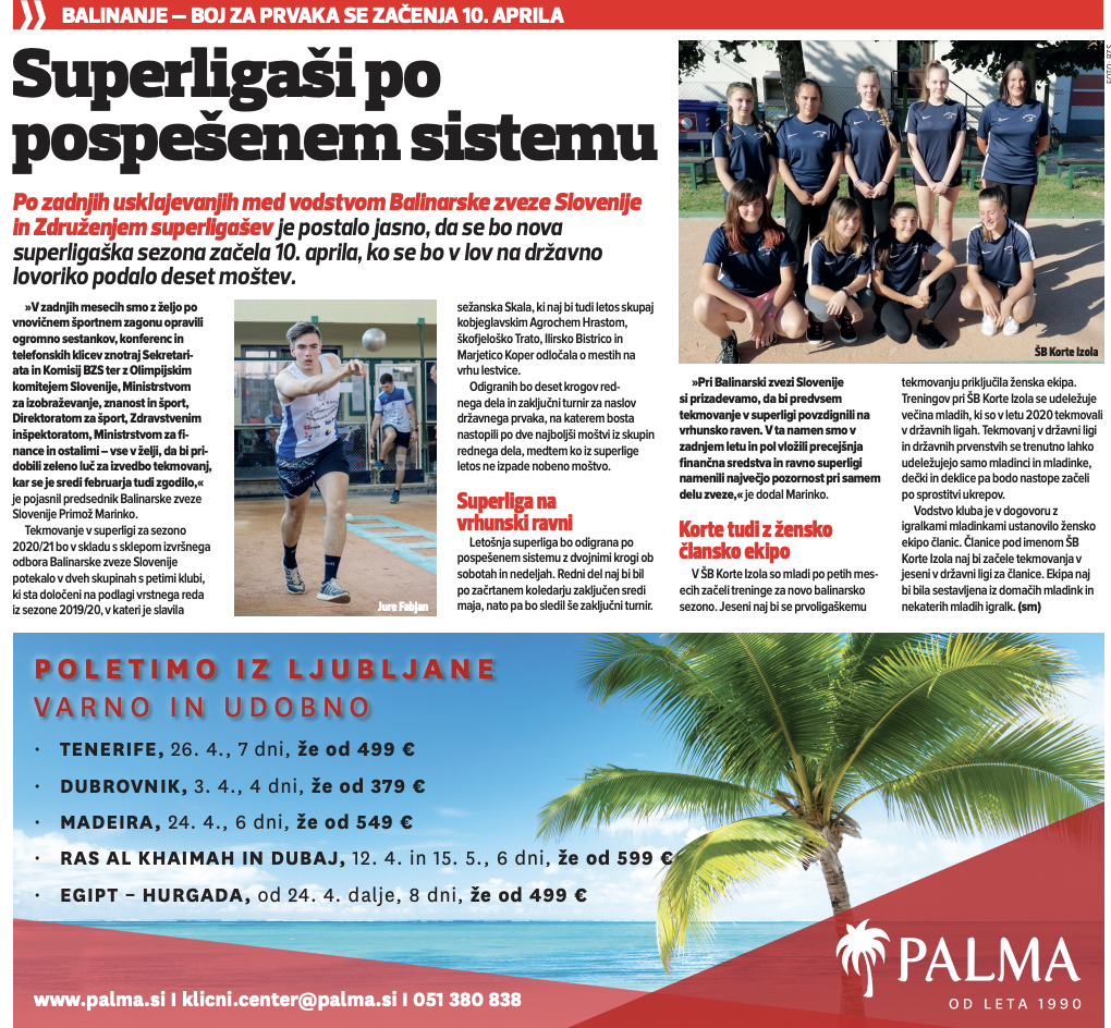 Po zadnjih usklajevanjih med vodstvom Balinarske zveze Slovenije in Združenjem superligašev je postalo jasno, da se bo nova superligaška sezona začela 10. aprila, ko se bo v lov na državno lovoriko podalo deset moštev.