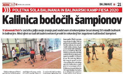 V slovenski Istri v začetku julija svoje znanje pod vodstvom strokovnjakov brusi skoraj 50 mladih balinark in balinarjev. Med njimi so tudi aktualni svetovni prvaki in rekorderji ter zagotovo tudi bodoči šampioni.