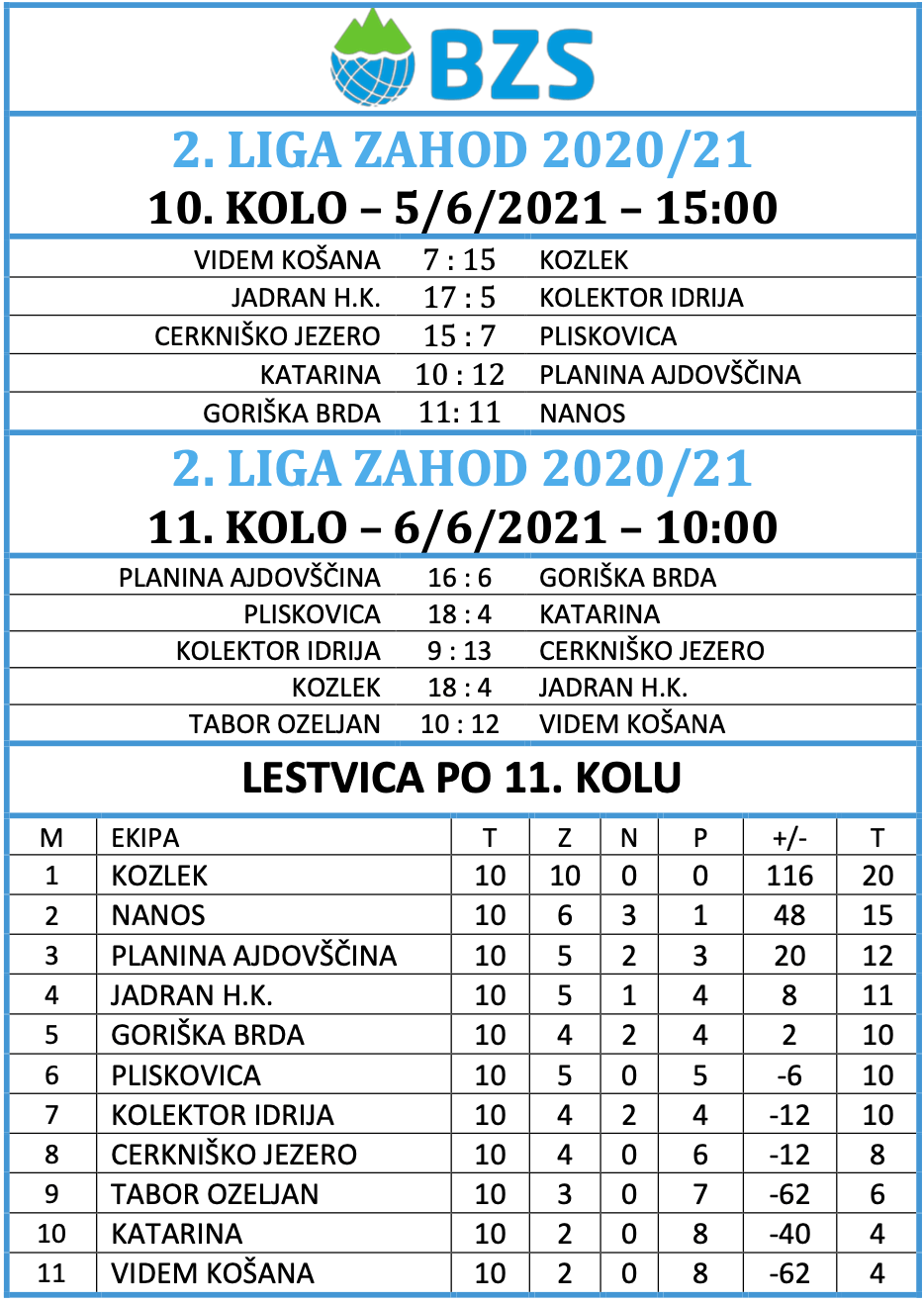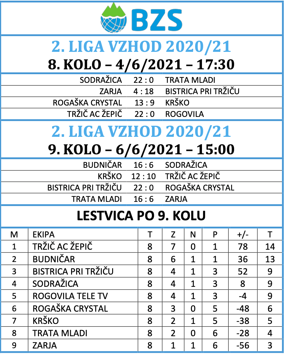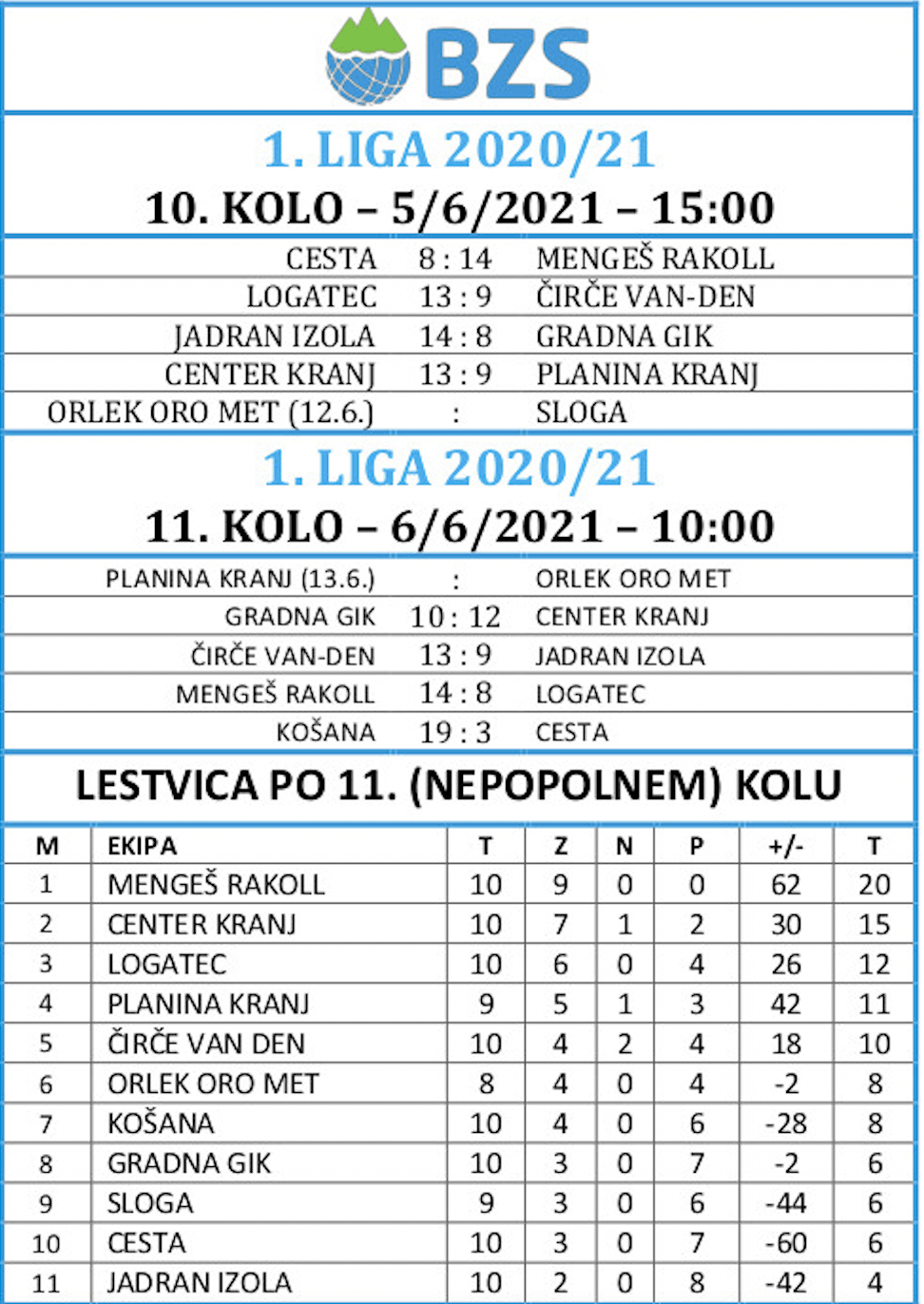 Konec tedna je prinesel nove dvoboje v Super lig ter 9. in 10. krog krog Lige U-18. V Super ligi vodilni položaj še naprej zaseda QAP Postojna, mesto v polfinalu pa si zagotovili tudi še Trata, Skala in Termoplasti Plama Ilirska Bistrica, medtem ko v mladinski ligi trenutno najbolje kaže ekipi Skala Hrast. Razpored tekem in rezultate lahko najdete na spletni strani BZS pod zavihkom Tekmovanja/Državne lige 2025/26 in preko aplikacije Challanger ter teletekstu RTV Slovenija.