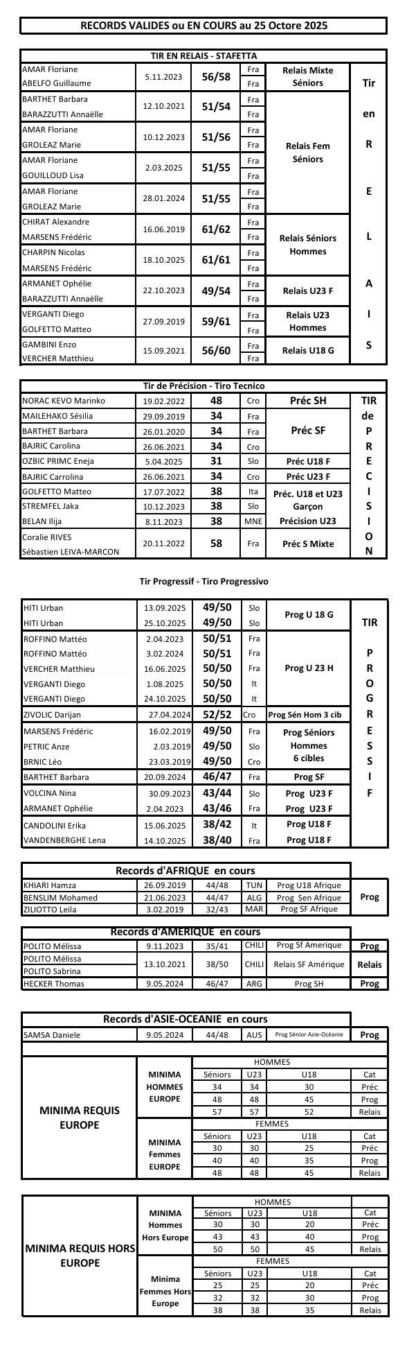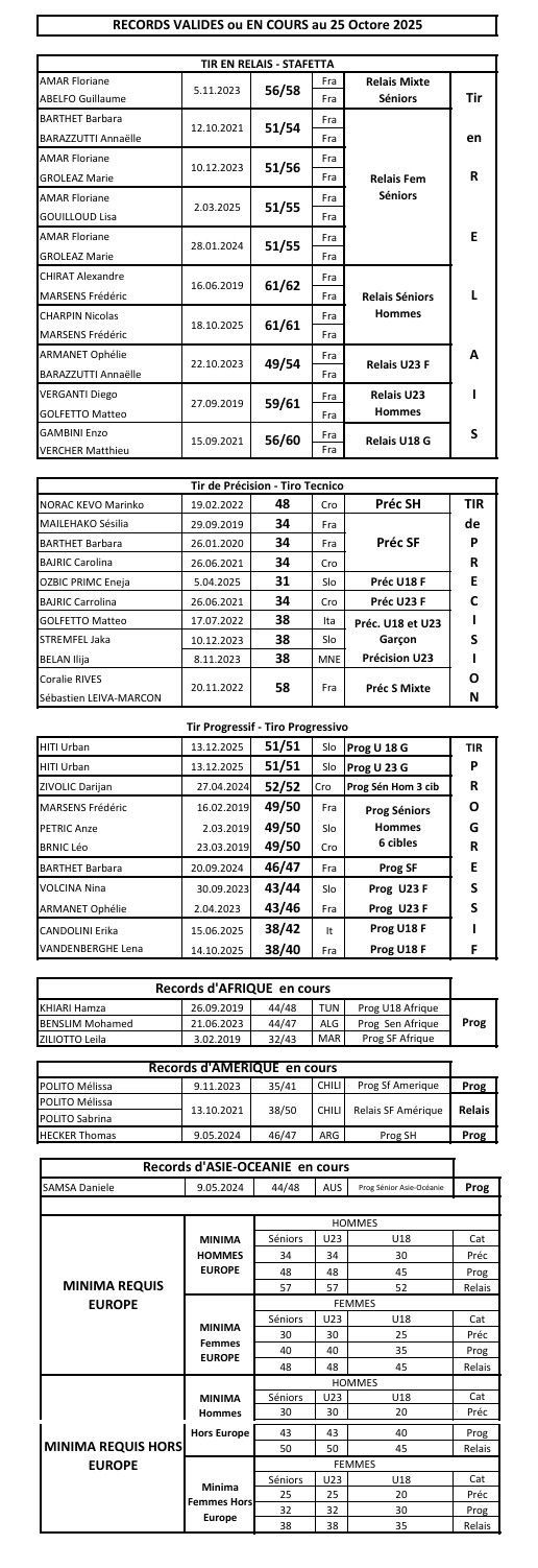 - Tabela svetovnih rekordov po kronološkem vrstnem redu dosežkov