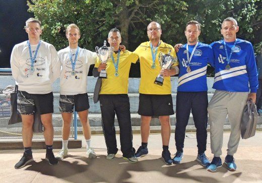 Podobno je bilo tudi v popoldanskem in večernem delu tekmovanja, ko so se najboljše dvojice pomerile za mesta na zmagovalnih stopničkah. Največ znanja, natančnosti in vzdržljivosti sta prikazala Mitja Kragelj in Rok Beguš (Orlek Oro Met), ki sta v izredno napetem finalu proti Eriku Petriču in Eriku Čehu (Agrochem Hrast III) nadoknadila zaostanek s 4:7 in prišla do vodstva z 9:7. V zadnjem obratu sta imela Čeh in Petrič še možnost za preobrat, a je bil Petrič pri zadnjem zbijanju nenatančen, tako da sta si Kragelj in Beguš lahko skočila v zmagovalni objem. V boju za bron sta bila Dejan Korošec in Martin Blatnik (Marjetica Koper) s 13:3 boljša od Gorazda Ferfolje in Jureta Fabjana (Agrochem Hrast I).