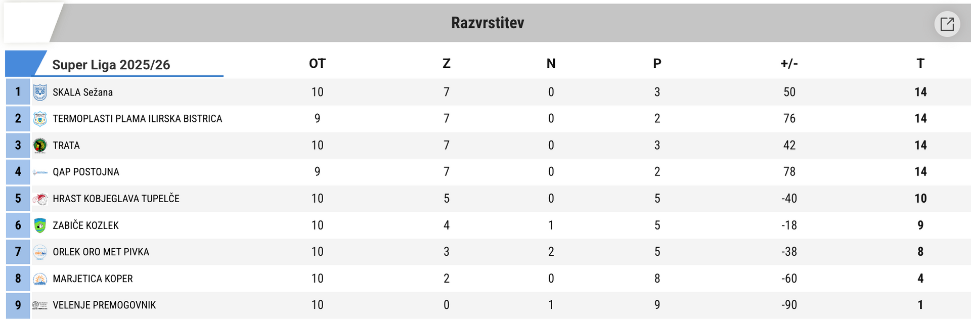 Po prazničnem premoru so bile v soboto odigrane tri tekme 10. kroga Super lige, v katerih so zmage vpisali Termoplasti Plama Ilirska Bistrica, Skala Sežana in Marjetica Koper, medtem ko bo obračun Trata - Zabiče Kozlek na sporedu v torek. Razpored tekem in rezultate lahko najdete na spletni strani BZS pod zavihkom Tekmovanja/Državne lige 2025/26 in preko aplikacije Challanger ter teletekstu RTV Slovenija.