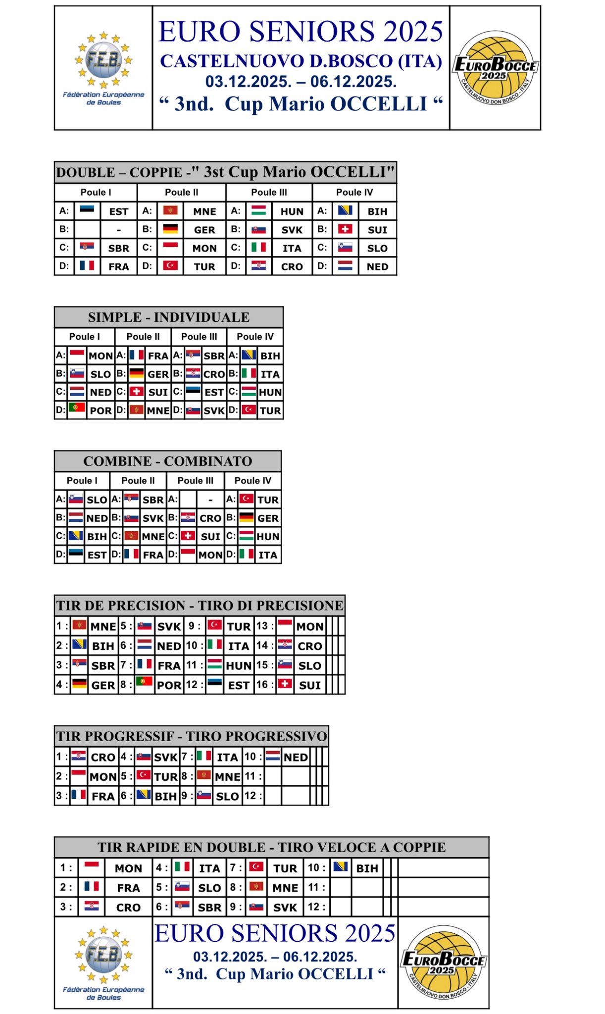 V italijanskem Castelnuovo Don Boscu se je začelo člansko evropsko prvenstvo, na katerem v vseh šestih disciplinah nastopa tudi Slovenija. Tekmovalni spored bo trajal od srede zjutraj do sobote zvečer, vse aktualne informacije in rezultate ter povezave do prenosov pa lahko najdete na spletni in Facebook strani Balinarske zveze Slovenije.