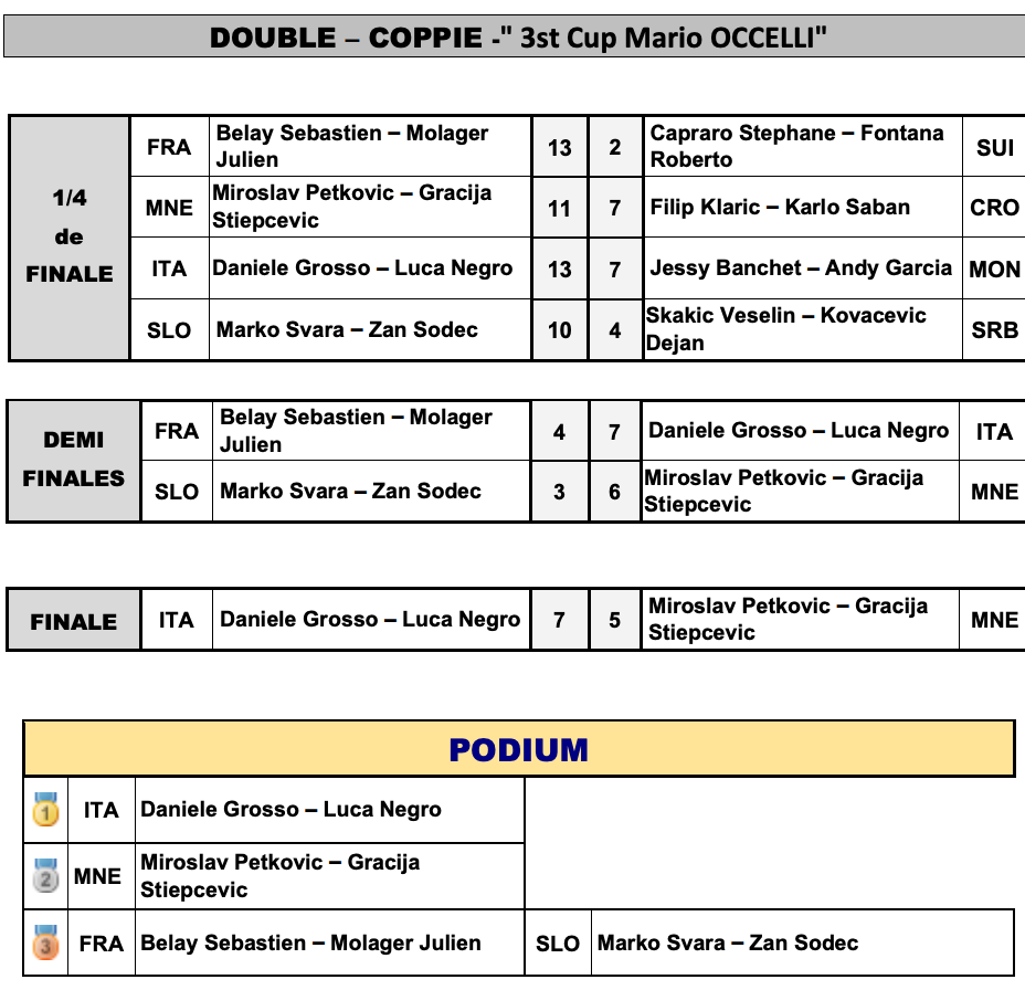 Kot zadnji slovenski orožji sta v soboto zjutraj v polfinalih nastopili dvojica Marko Švara – Žan Sodec ter štafeta Martin Zdauc – Anže Petrič. Slednja sta priznala premoč francoski navezi Frederic Marsens – Alexandre Chirat s 55:49, medtem ko sta Švara in Sodec klonila proti Črnogorcema Miroslavu Petkoviću in Graciji Stjepčeviću s 6:3.