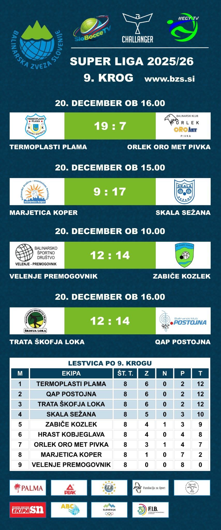 V balinarski Super ligi je konec tedna prinasel dvojni krog, tako da je bila večina superligašev zelo zaposlena. Posnetek nedeljskega derbija med Skalo in Termoplasti Plamo Ilirska Bistrica si lahko ogledate na spletni strani BZS. Razpored tekem in rezultate lahko najdete na spletni strani BZS pod zavihkom Tekmovanja/Državne lige 2025/26 in preko aplikacije Challanger ter teletekstu RTV Slovenija.