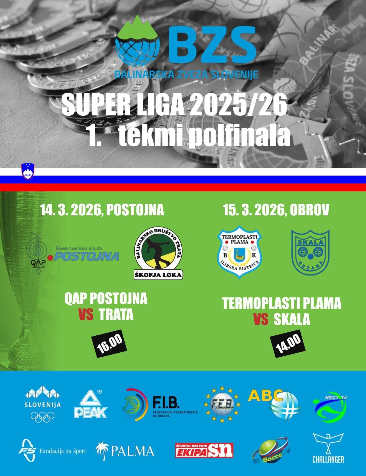 V zadnjem krogu rednega dela Super lige je padla odločitev o parih polfinala, ki se bo na dve dobljeni tekmi pričelo 14. marca, ter obstanku v elitni moški balinarski druščini, v katerem so krajšo potegnili Velenjčani. Razpored tekem in rezultate lahko najdete na spletni strani BZS pod zavihkom Tekmovanja/Državne lige 2025/26 in preko aplikacije Challanger ter teletekstu RTV Slovenija.