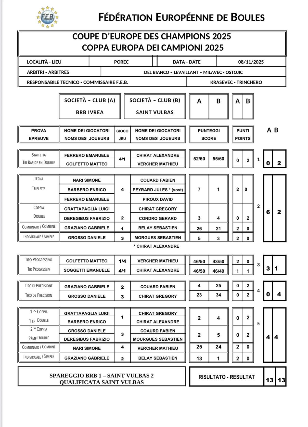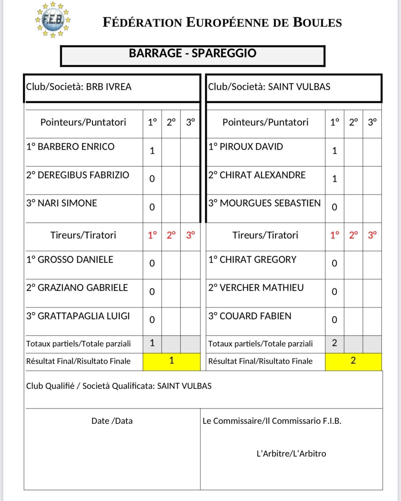 Polfinale: BRB Ivrea - Saint Vulbas 13:13 (1:2)