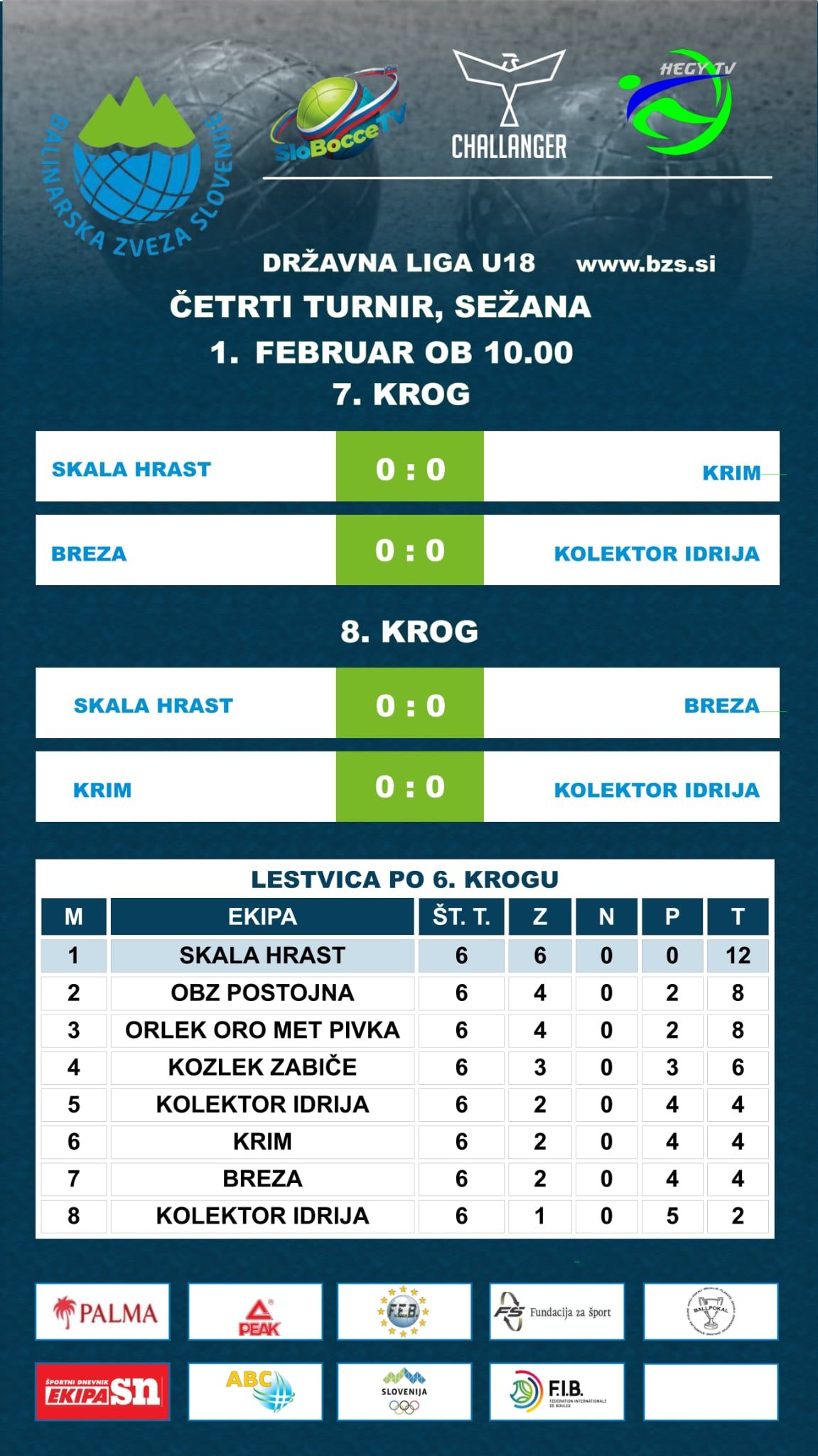 Sobotni 11. krog Super lige je prinesel štiri pomembne obračune, ki so vplivali na stanje na vrhu in v drugi polovici prvenstvene lestvice. Škofjeloška Trata je na gostovanju pred kamerami morala priznati premoč sežanski Skali, QAP Postojna je slavila na zahtevnem gostovanju v Zabičah, kobjeglavski Hrast je premagal Marjetico Koper, zadnjeuvrščeni Velenjčani pa so se z gostovanja v Pivki vrnili s prvo točko. Posnetek derbija iz Sežane si lahko ogledate na spodnji povezavi, razpored tekem in rezultate pa lahko najdete na spletni strani BZS pod zavihkom Tekmovanja/Državne lige 2025/26 in preko aplikacije Challanger ter teletekstu RTV Slovenija.