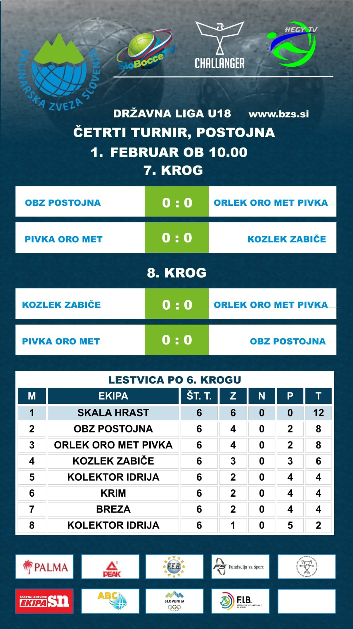 Sobotni 13. krog Super lige prinaša dvoboje Termoplasti Plama Ilirska Bistrica - Velenje Premogovnik, Hrast - Trata, Orlek Oro Met Pivka - QAP Postojna in Skala - Zabiče Kozlek. V nedeljo bodo v Postojni in Sežani odigrane tekme 7. in 8. kroga lige U-18. Razpored tekem in rezultate pa lahko najdete na spletni strani BZS pod zavihkom Tekmovanja/Državne lige 2025/26 in preko aplikacije Challanger ter teletekstu RTV Slovenija.